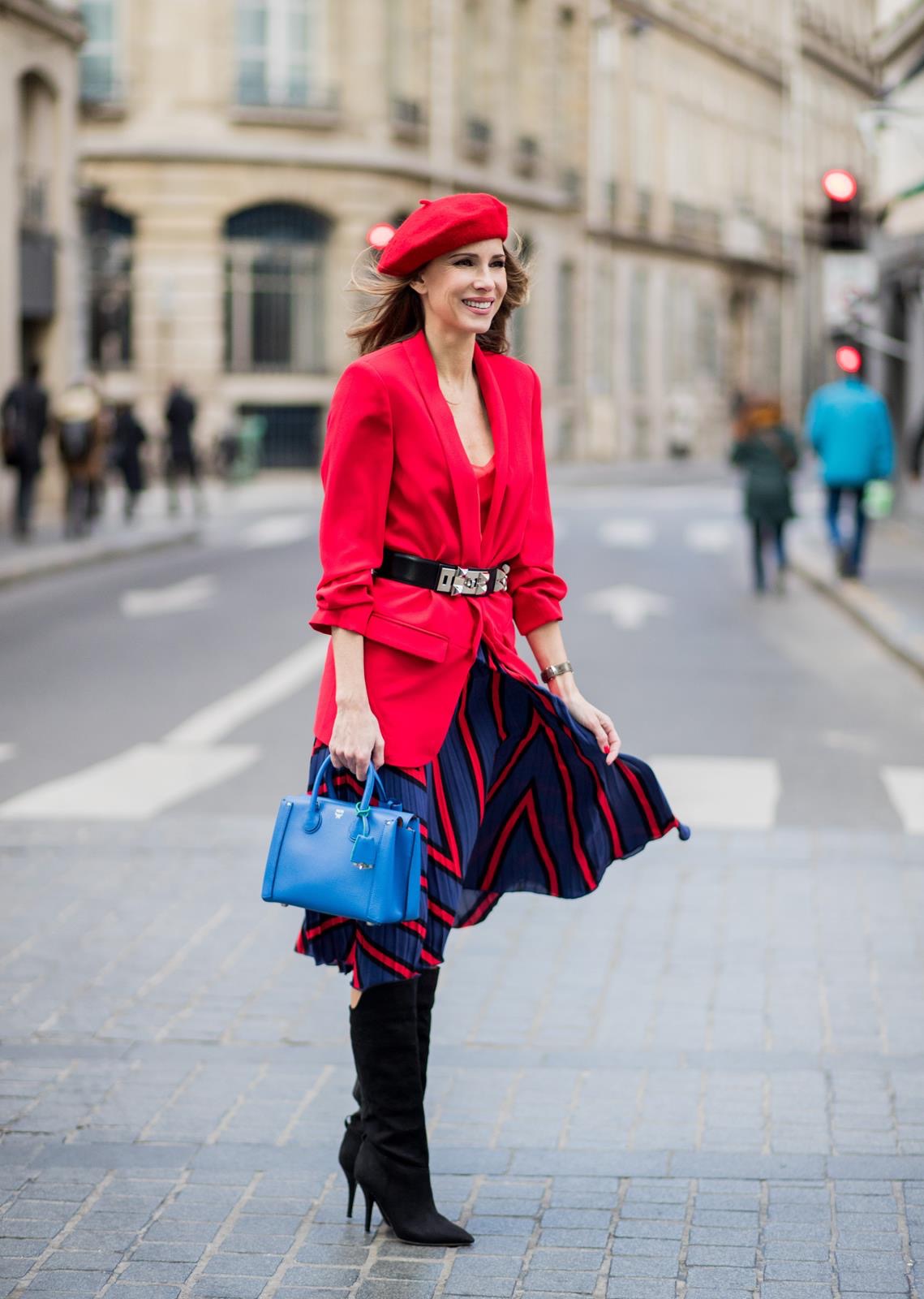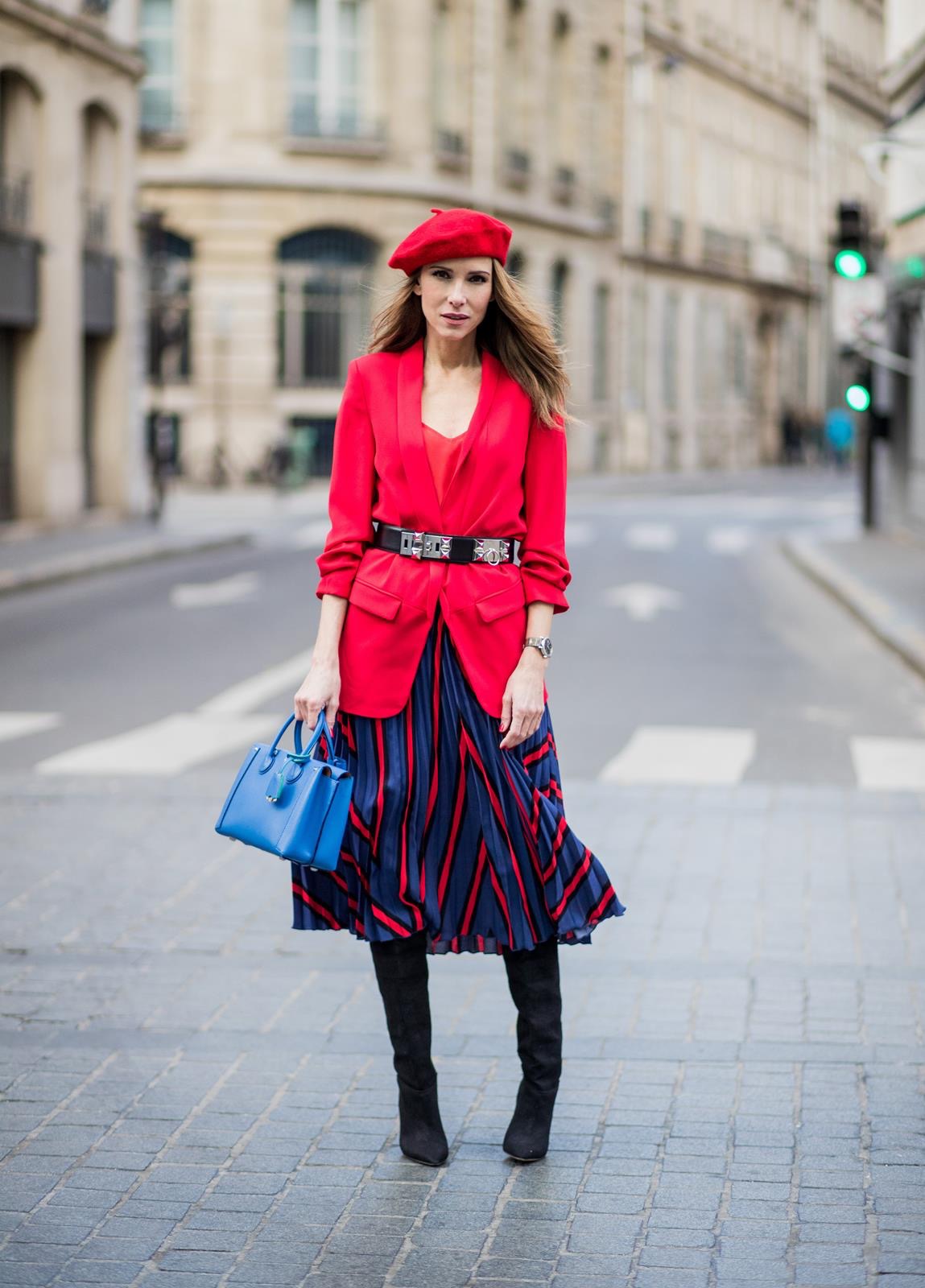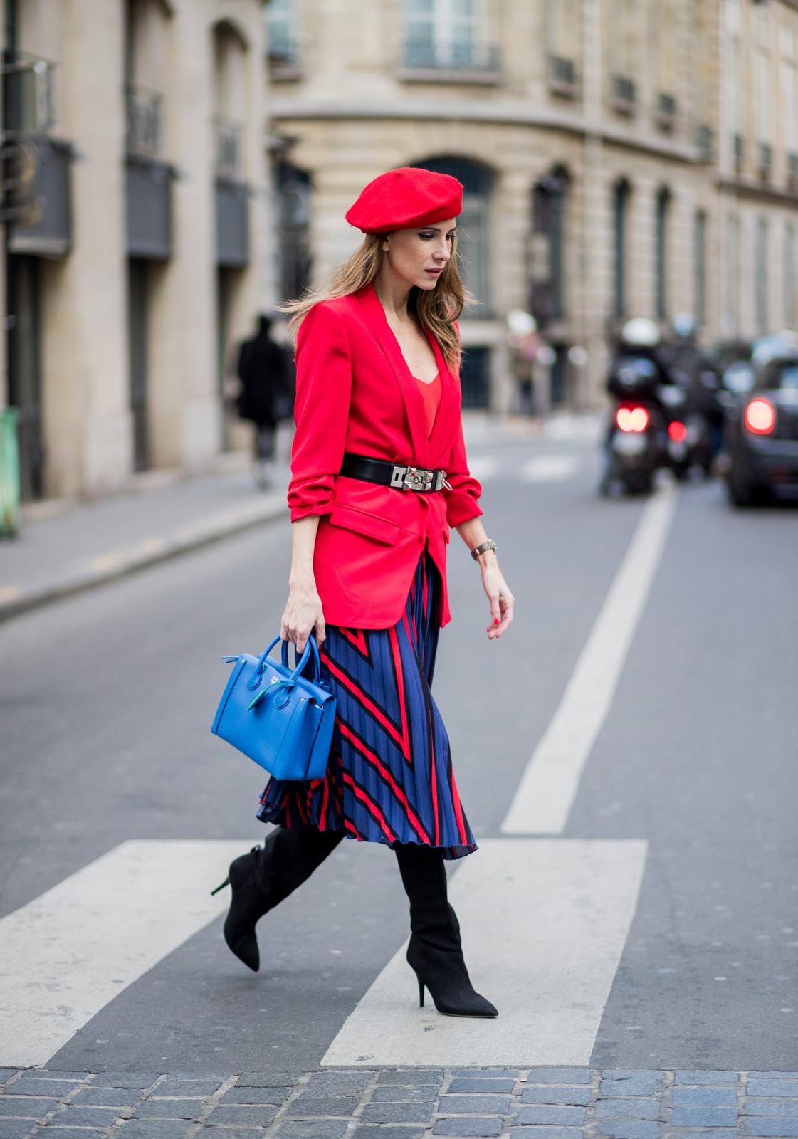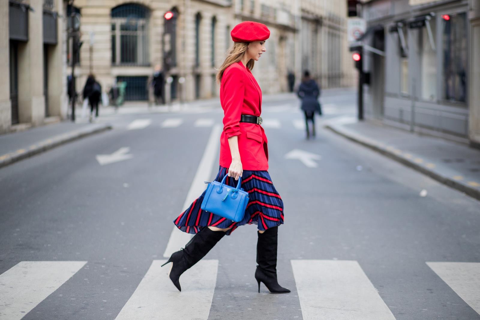 My blue Neo Milla handbag from MCM is a modern, elegant bag crafted of fine Spanish leather. The bag works wonderfully during the day or at night, is serves all occasions. It has this perfect size and this great quality that just works all the time. You can also combine it with an elegant look or with a sporty one. My black boots are from Isabel Marant a nice widely cut boot, great to wear with skirts. On my head you can see my little red beret cap from Asos, a perfect finish for this little Parisian look.